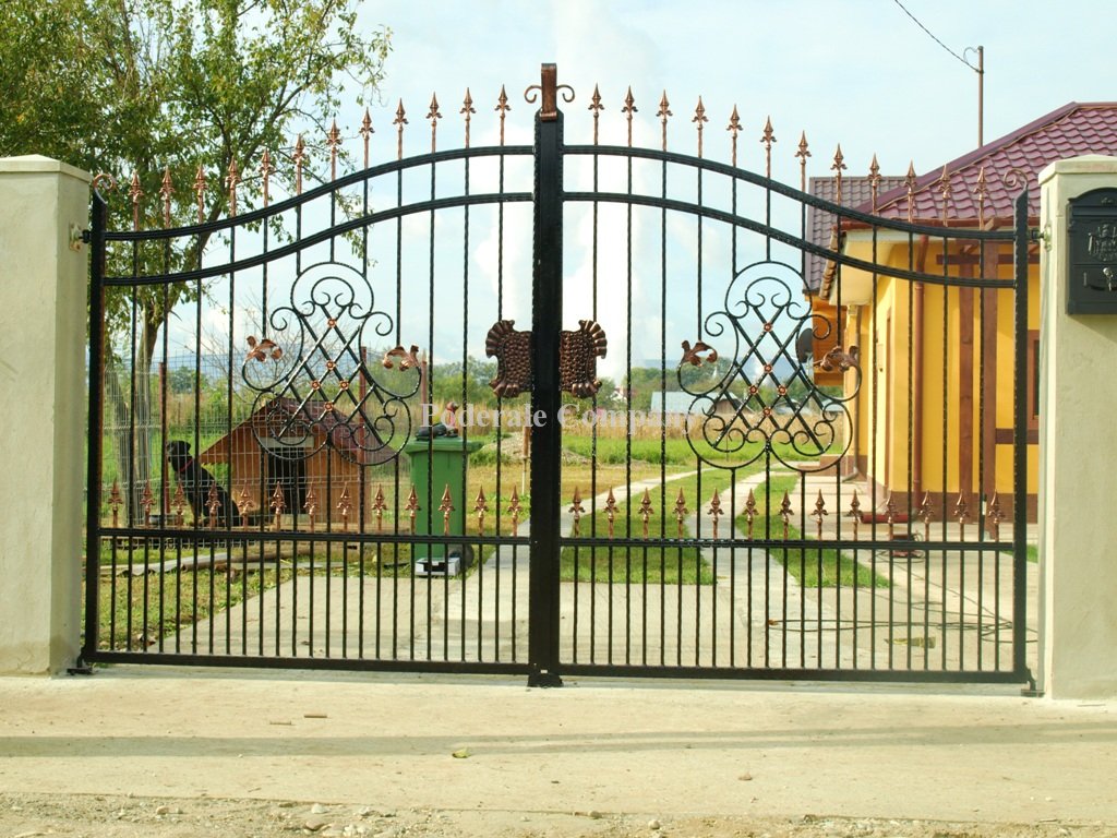 Toate portile din fier forjat executate de noi sunt vopsite in camp electrostatic, asigurand astfel un aspect impecabil si o durata mare de viata a tuturor elementelor din fier forjat.
